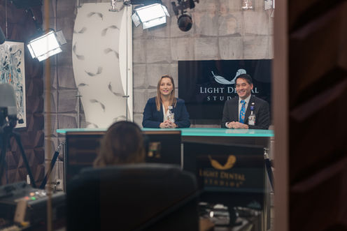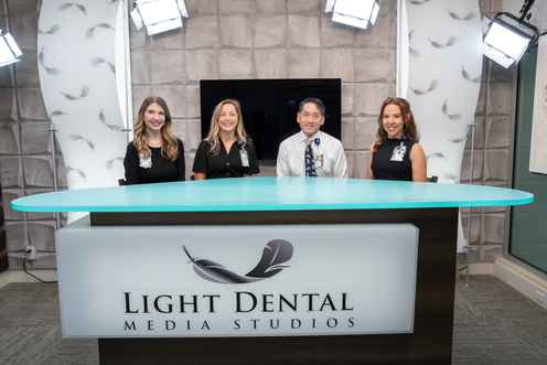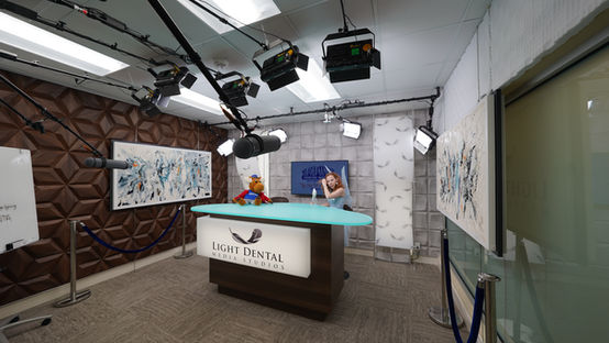 Light Dental is a different kind of dental office. We don't just clean teeth. We also make dental content to educate the community! With the goal of enhancing the public's perception of the dental office experience, our in-house film set (the "studio" of "Light Dental Studios") is the setting of many a social media post, company update, and everything in between. All parties interviewed on Sound People™ are placed against its bright, pristine backdrop, made complete with professional lighting and filming equipment. If you were to drop into the studio, you may come across Dr. Broughton or Dr. Dunn; but more likely, you'll encounter a member of the marketing team hard at work on the next commercial or social media campaign (or maybe just answering emails).